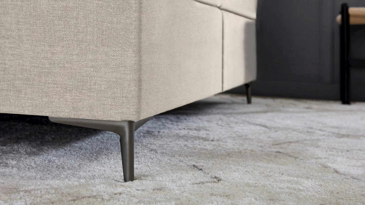 Dit model heeft een grover geweven stof ‘Hopper’ die je kiest in jouw favoriete kleur. Het slanke, titankleurige pootje maakt de boxspringlook helemaal af.