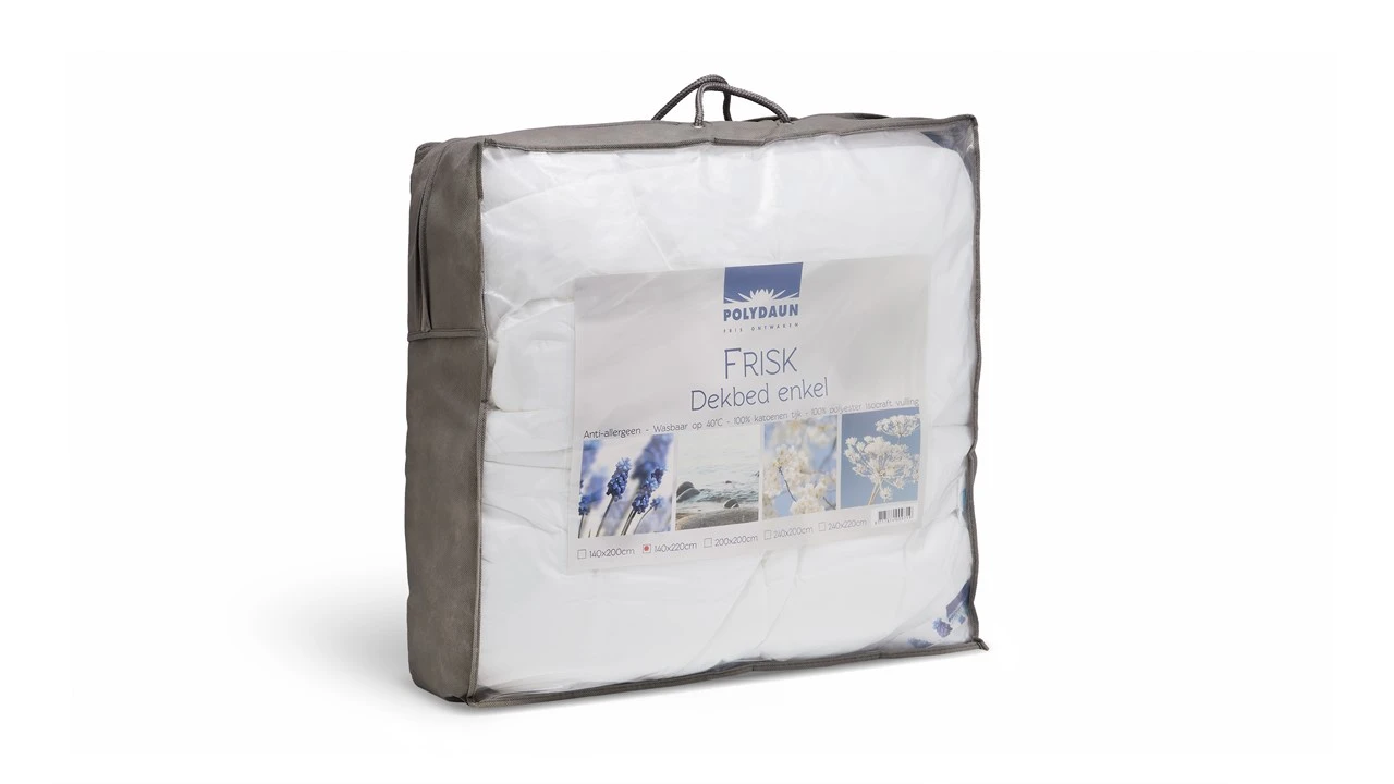 Kruip heerlijk weg onder dekbed Frisk enkel van Polydaun. Dit dekbed is dankzij de vulling blijvend zacht en veerkrachtig. Ook zorgt deze voor zeer goede warmte-isolatie.