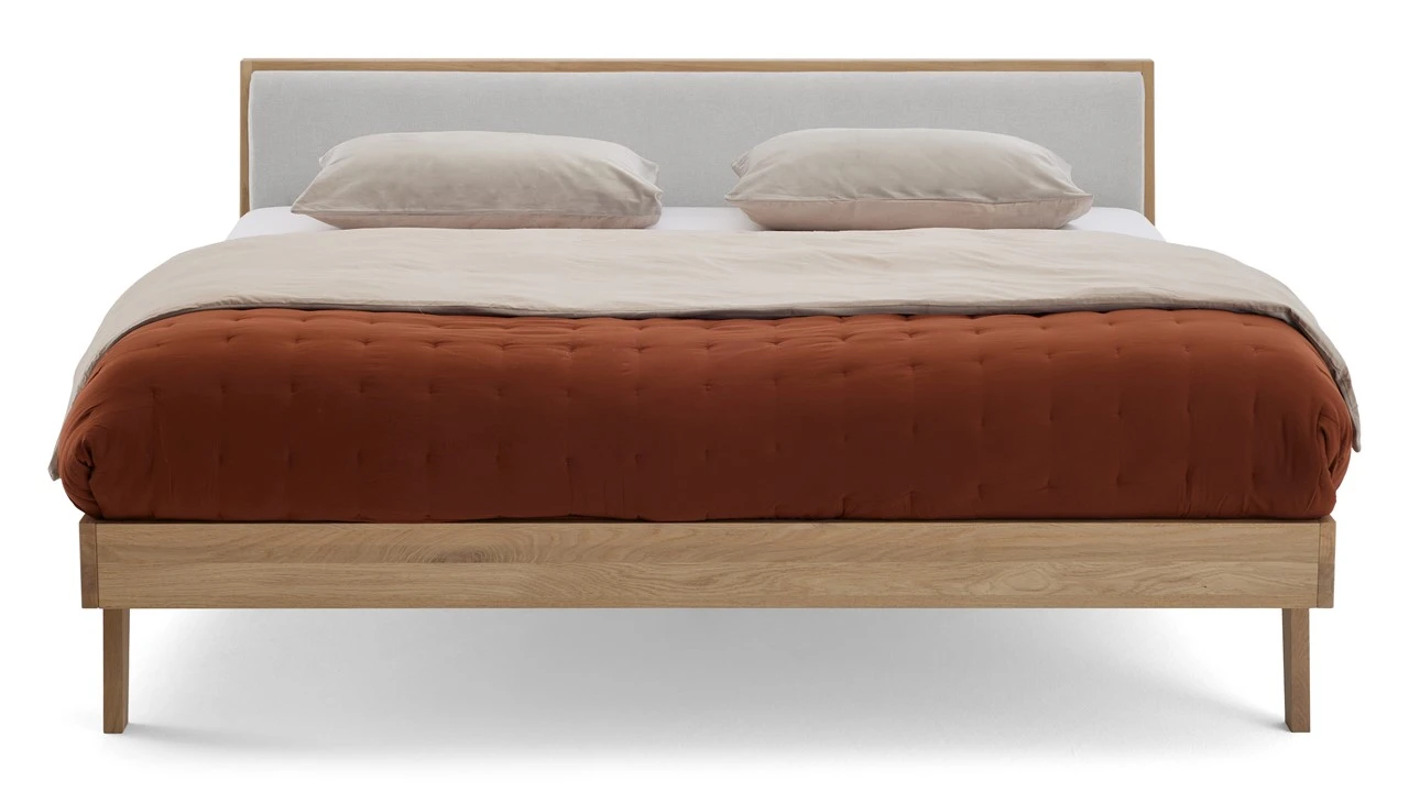 Dit bed wordt geleverd met gestoffeerd hoofdbord, zonder bedbodem en matras.